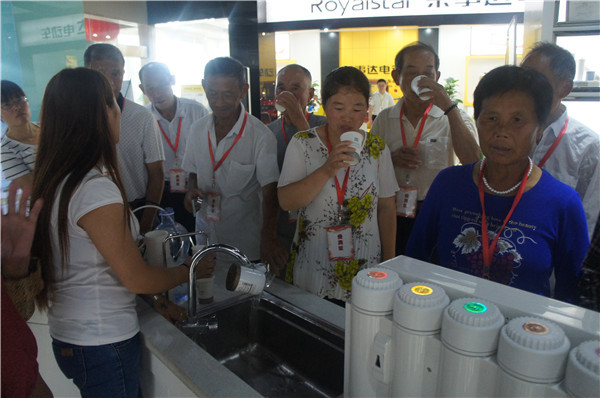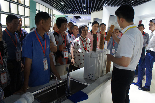 參觀中,安徽望江地區(qū)的李先生詢問有沒有能過濾井水的產(chǎn)品,“我們家里沒通自來水,這些天連續(xù)大雨,家里井水犯渾,根本沒辦法喝。”工作人員向其推薦了專門為農(nóng)村地區(qū)研發(fā)的自吸式純水機(jī),產(chǎn)品能有效克服水壓不足、不穩(wěn)問題,采用先進(jìn)的反滲透技術(shù)和五級(jí)過濾系統(tǒng),能夠高效濾除水中雜質(zhì),去除水垢、水堿、農(nóng)藥、化肥、細(xì)菌、重金屬等有害物質(zhì)。在展廳,消費(fèi)者切身感受了產(chǎn)品使用效果,在飲用機(jī)器現(xiàn)制的水之后,紛紛稱贊產(chǎn)品功能強(qiáng)。