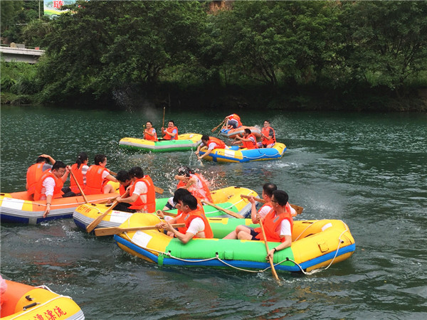 能在百忙之中抽空出來一飽眼福,怎一個(gè)“爽”字了得!怪潭漂流:團(tuán)結(jié)協(xié)作 永爭(zhēng)第一