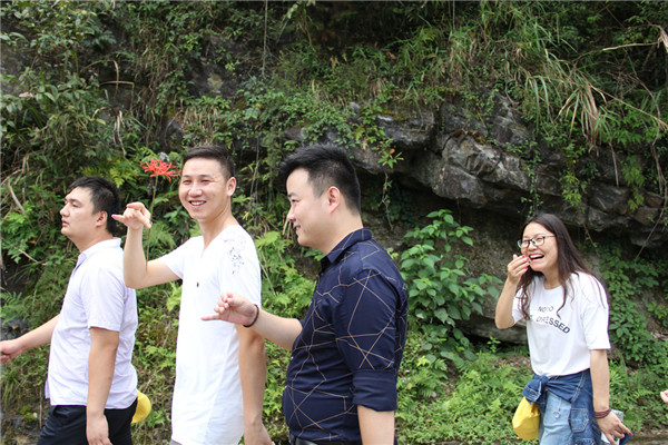 整裝待發(fā):清晨六時(shí)許,所有人員已集合完畢,勤快可是我們銷售精英優(yōu)秀的本質(zhì)之一!看看,大合照是不是朝氣滿屏。仙洞探秘:絢爛多姿 大飽眼福