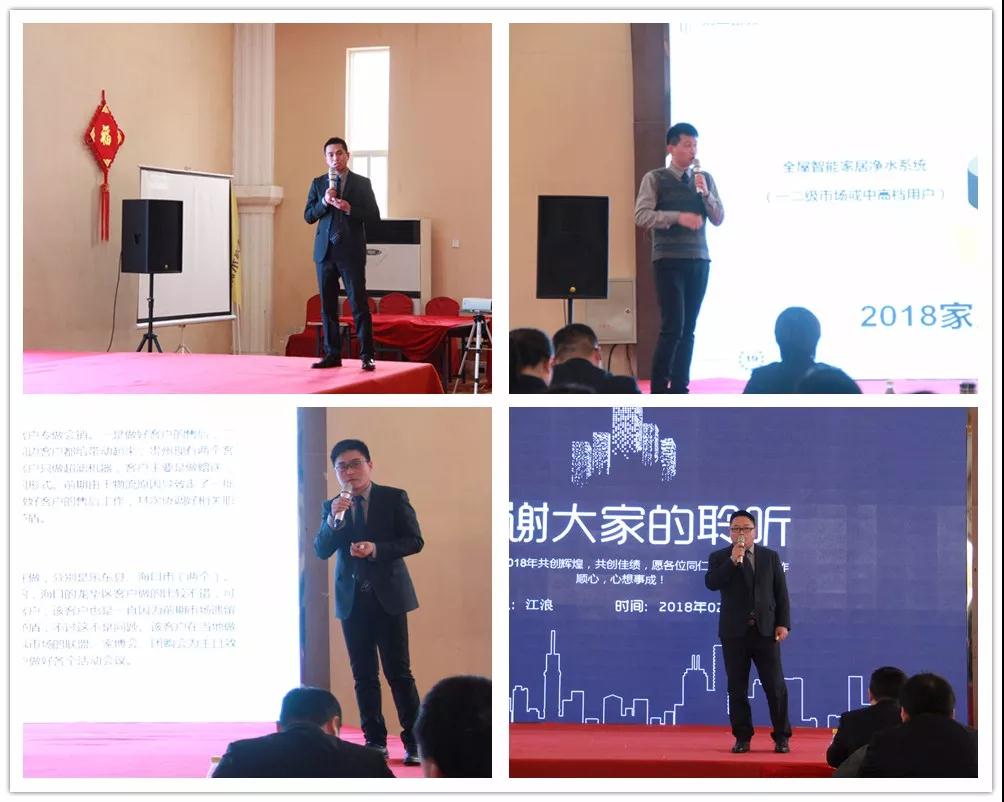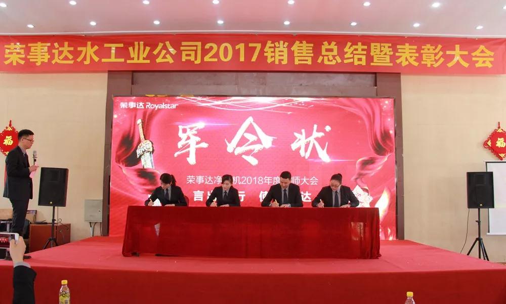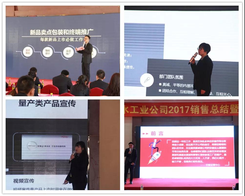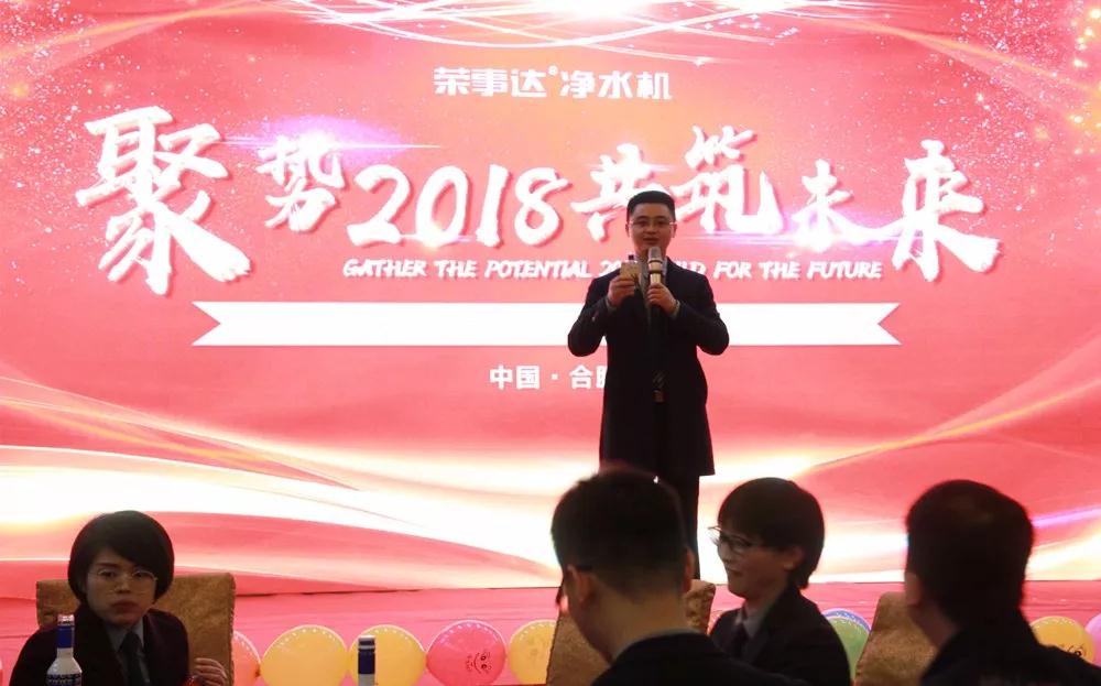 榮事達水工業公司總經理王悅生作大會開場致辭。王總回顧了公司在2017年取得的傲人成果與輝煌業績,提出2018年戰略發展規劃和目標,并要求圍繞新目標,開好局,起好步,以實際行動落實新規劃,謀求新發展,創造新輝煌。