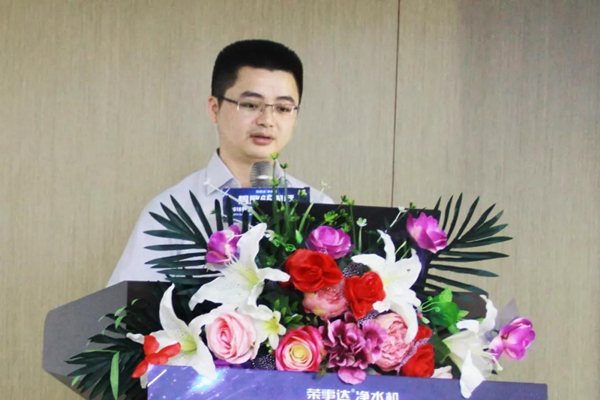 榮事達水工業公司總經理王悅生作發布會致辭。王總總結回顧了榮事達65周年歷程,提出在新時代下的戰略發展規劃和目標,表明在未來榮事達也將繼續創新求變,全方位夯實品牌基礎,升級品牌價值,使榮事達這塊民族“老招牌”煥發新活力,并簡略介紹了榮事達全屋智慧凈水生態系統的核心技術,希望能同新老代理商一起再創輝煌。