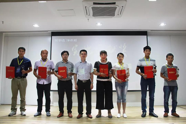在新品發布環節,王總隆重介紹了榮事達數年磨一劍,研發出的全屋智慧凈水生態系統,這是榮事達水工業公司科研實力的一次大升級,是榮事達水工業公司國家級凈水實驗室、業內頂尖設計人才精心研發的成果,是對榮事達65周年的獻禮和向市場交出的答卷。榮事達全屋智慧凈水生態系統包括智能前置過濾器、中央凈水機、中央軟水機、大通量反滲透凈水機和智能管線機等一整套的新品設備,凝聚了十二大核心技術,以及“防爆科技”、“集成水路”、“大通量”、“小體積”等特點,提高安全性,增加人性化,充分符合城市家庭對全屋凈水的需求,受到廣大客戶的關注。其中600G智能反滲透凈水機,在不久前榮獲有凈水行業“奧斯卡”之稱的 “泰利斯”卓越產品獎。