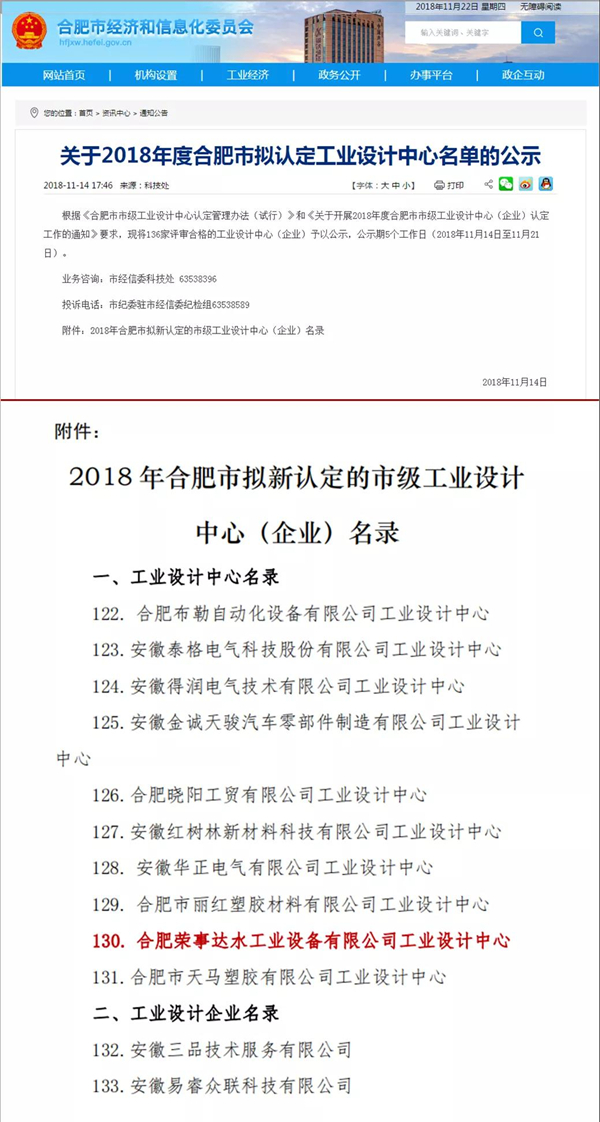 • 喜訊丨榮事達水工業公司獲評“合肥市市級工業設計中心”