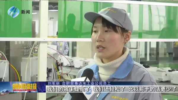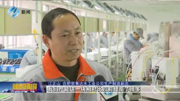 213日晚2130分,合肥新聞頻道《晚間播報》節目播出新聞《人勤春來早 新車間開啟新目標》,榮事達水工業公司作為本土知名企業,在新春伊始全面開啟生產模式,公司全新投入使用的全自動智能化生產線、檢測線上已是一片忙碌景象。