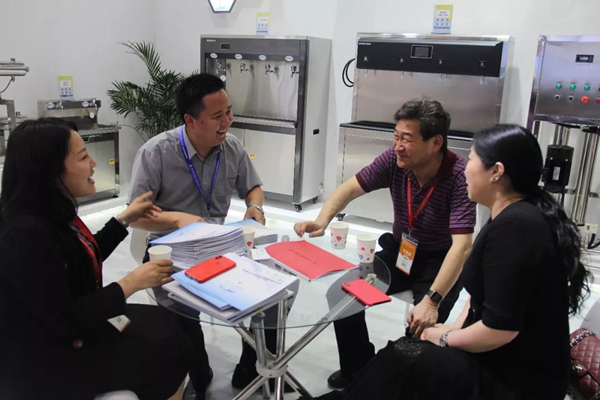 在主講區(qū),講解員小蔡就企業(yè)最新研發(fā)成果向記者做了詳細(xì)的介紹。他表示,信息網(wǎng)絡(luò)化的發(fā)展,使越來越多校園步入了“互聯(lián)網(wǎng)+”時(shí)代,而榮事達(dá)亦應(yīng)走在前列。比如,此次展會(huì)首次亮相的榮事達(dá)物聯(lián)網(wǎng)智能直飲機(jī),就實(shí)現(xiàn)了校園直飲水的物聯(lián)網(wǎng)嫁接,微信小程序后臺(tái)管理,微信、支付寶掃碼支付等等,讓校園師生取水更加方便。除此之外,在前幾個(gè)月召開的教育部《學(xué)校直飲水設(shè)備運(yùn)維模式適用性研究》項(xiàng)目討論會(huì)上,榮事達(dá)開發(fā)的“校園直飲水智慧管理系統(tǒng)”以創(chuàng)新獨(dú)特的云端運(yùn)維管理,也得到與會(huì)領(lǐng)導(dǎo)和行業(yè)專家的一致肯定。