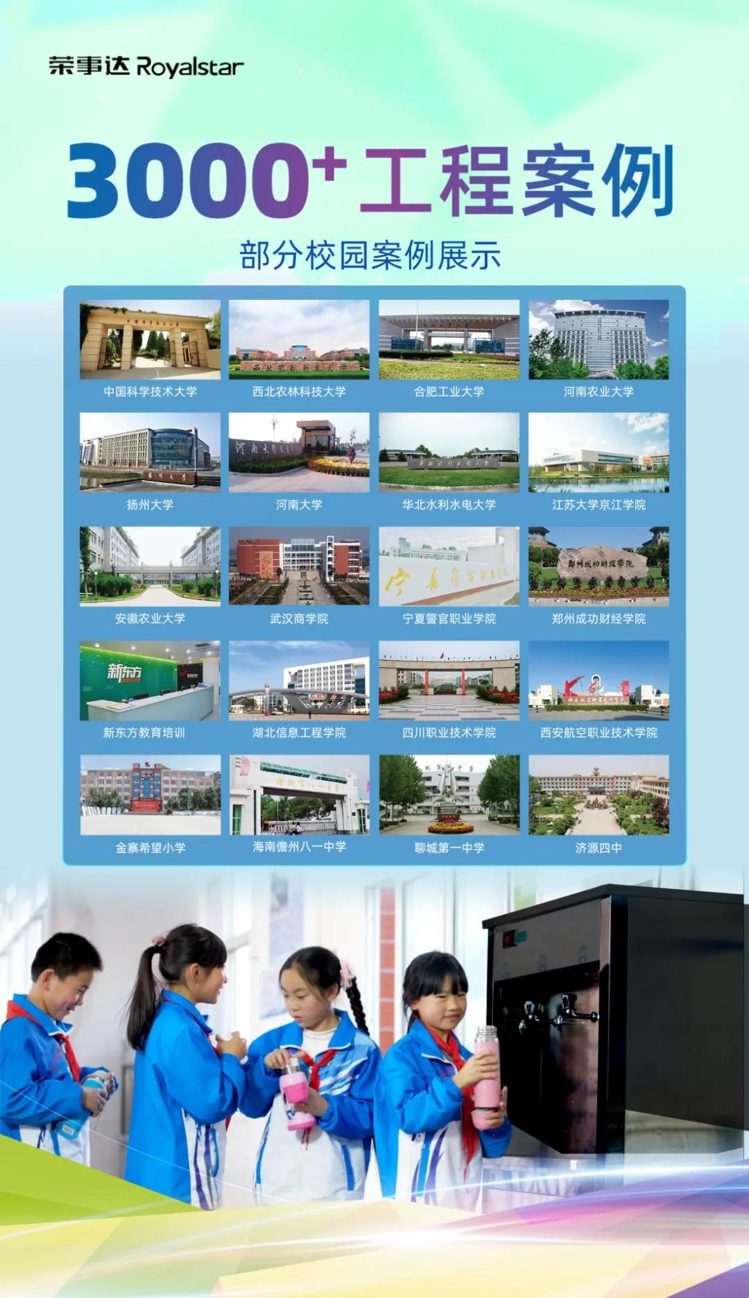 隨著現代化教育的全面推進,榮事達將人性化設計作為產品設計準則,充分發揮自身技術、產品、質量、服務等多方優勢,為小朋友提供綜合智能飲水服務方案,讓更多祖國的花朵擁有健康安全的飲水體驗,用心“喝”護健康茁壯成長!