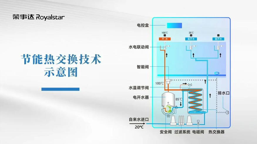 在水質安全方面,設備采用多級過濾與RO反滲透技術,能有效濾除水中的泥沙、鐵銹、重金屬、余氯等有害物質,確保出水達到直飲標準,讓師生每一口都喝得安心。同時,設備運用熱能交換技術,在保證出水量大、高效安全的基礎上實現節能省電,既符合校園綠色發展理念,又為學校節約了運營成本。