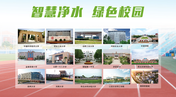 榮事達(dá)水工業(yè)先后承建了中國科學(xué)技術(shù)大學(xué)、河南大學(xué)、西北農(nóng)林科技大學(xué)、江蘇省丹陽市第五中學(xué)等三千五百余所學(xué)校的直飲水工程,‘喝’護千萬師生飲水健康。