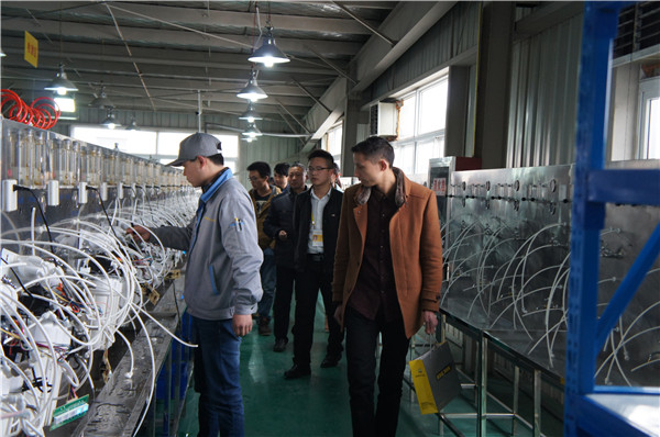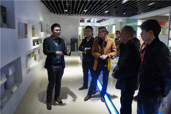 在產(chǎn)品展廳,華中大區(qū)總監(jiān)劉明明為參觀人員介紹了公司產(chǎn)品種類、功能,并分析了凈水行業(yè)的現(xiàn)狀和發(fā)展前景。之后,一行十余人參觀了園區(qū),看到整齊停放的服務(wù)車,參觀者連連稱贊公司這一加盟政策給力,既方便了代理商跑市場(chǎng),又是十分有效的宣傳方式。在生產(chǎn)車間,參觀者一邊認(rèn)真聽取講解,一邊仔細(xì)觀看生產(chǎn)環(huán)節(jié),零距離接觸生產(chǎn)線,親身感受操作流程。