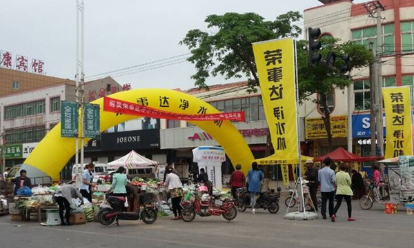 開業當天,店門口擺放巨大的氣拱門,布滿道旗,再加上榮事達凈水機服務車的來回宣傳,吸引了眾多消費者駐足并進店咨詢,店里專業導購人員為前來咨詢的消費者做了詳細的講解和介紹。為了讓更多的人了解凈水的重要性,代理商更是當場演示凈水機的工作過程,普及凈水知識。