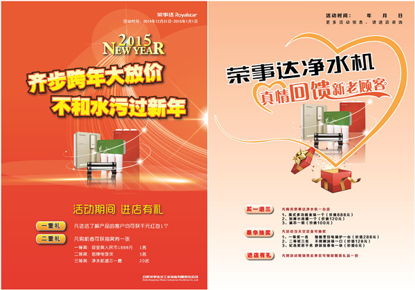 又至歲末,辭舊迎新,榮事達(dá)跨年獻(xiàn)禮,感恩回饋,再掀凈水狂潮。 回首2014,居民飲水安全頻頻告急,安裝家用凈水機(jī)實(shí)現(xiàn)“純凈水自己造”,構(gòu)筑飲水安全...